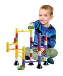 Stel je eigen knikkerbaan samen met deze uitdagende Quercetti Migoga set. Volg de voorbeelden die op de doos staan afgebeeld of maak je eigen combinaties met behulp van onder andere bruggen, pilaren, en draaiende wielen. Alle onderdelen passen gemakkelijk in eindeloze combinaties en alle Migoga knikkerbanen van Quercetti kunnen op elkaar aangesloten worden.