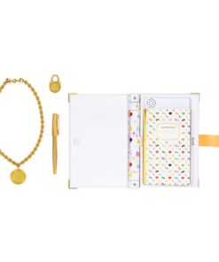Laat je inspireren door het activiteitenboekje, net als de leerlingen van Rainbow High, en sla al je geheimen op in dit prachtige, meerkleurige geheime dagboek. Bewaar je geheimen en diepste gedachten veilig via het slotje dat je alleen kunt openen met de hanger. Plaats de ketting op het Rainbow High-vergrendelplaatje om het slot te openen. Er wordt zelfs een Rainbow High-lied afgespeeld zodra je het dagboek opent! Het slot heeft een dubbelfunctie en kan ook een sieraad voor jou zijn. Dit dagboek bevat een activiteitenboekje en bijpassende gouden pen, perfect voor schetsen, foto’s, mode-ontwerpen, activiteiten en meer. Je kunt de pen van je activiteitenboekje en nog meer in jouw dagboek opslaan. Het geheime dagboek van Rainbow High bevat een activiteitenboekje, dagboek, hanger, slotje en pen. Geschikt voor kinderen vanaf 6 jaar.