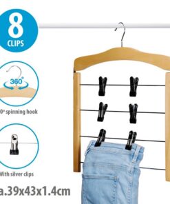 Deze ruimtebesparende Alpina broekhanger met knijpers is een handige hanger om kledingstukken zoals broeken en rokken aan te hangen. Hij beschikt over 4 lagen en 8 wasknijpers. Met een 360° flexibele ophanghaak zodat de hanger makkelijk in je kast past.