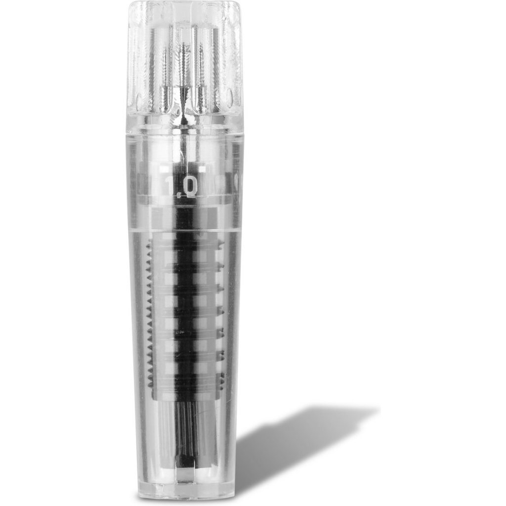 - Om de tekenpunt te vervangen open je het transparante opbergdoosje en draai je met de dop van het doosje de oude punt uit de MG1 PRO en draai met de dop de nieuwe punt erop