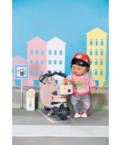 De beste manier om je in de stad te verplaatsen is met een kleine scooter, daarom gaat Baby Born de straat op met zijn nieuwe, moderne elektrische scooter. Hij wordt bediend met een afstandsbediening en gaat voor- en achteruit. Natuurlijk moet zo’n elektrische step worden opgeladen: tijdens het opladen gaat het achterlicht branden wanneer het in contact komt met het oplaadpunt, om een authentieke weergave van het opladen te geven. Kleur: roze/zwart. Geschikt voor kinderen vanaf 3 jaar.