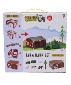 Bouwpakket om zelf een speelset mee in elkaar te zetten. De set bestaat uit een boerderij, tractor met aanhanger, 3 dieren en een boom. Schaal 1:50. Geschikt voor kinderen vanaf 3 jaar.