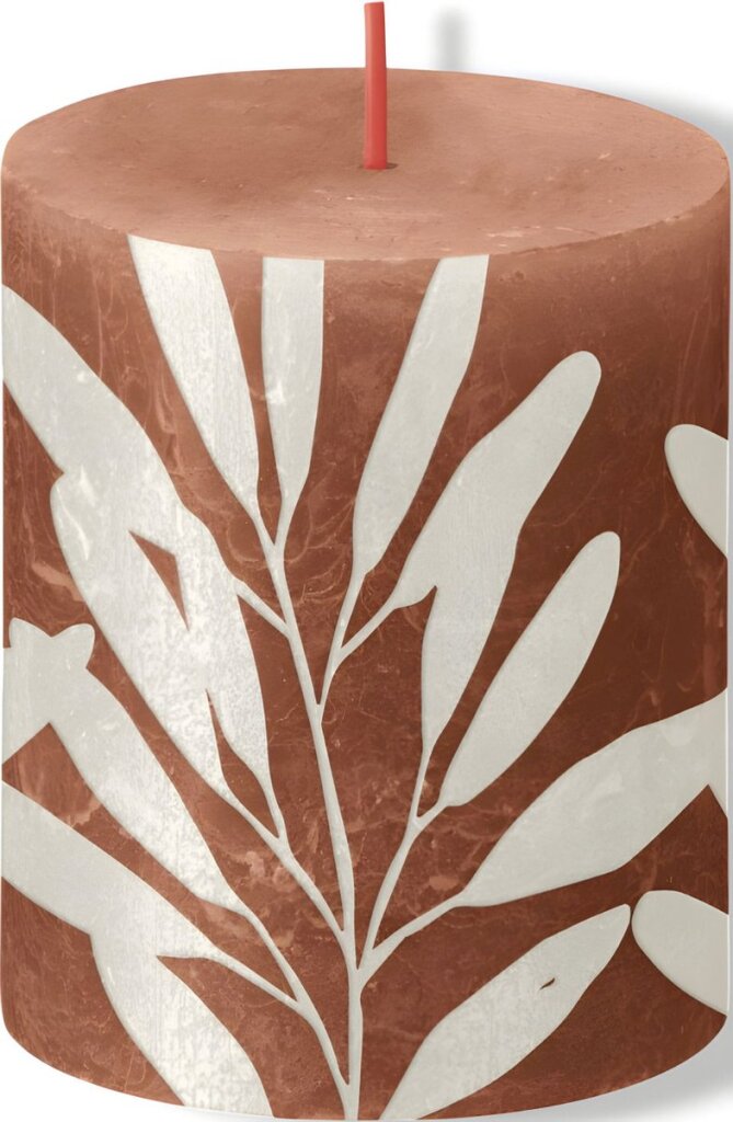 • Bolsius Rustiek printed stompkaars 80/68 Soft pearl fern