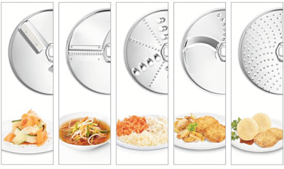 - een extra schijf voor Aziatische groenten en een aardappelrasp