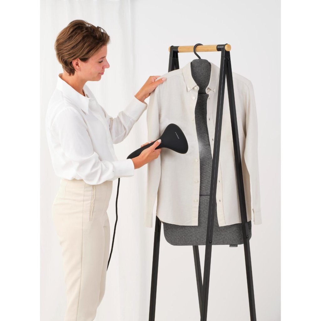 Het Brabantia opvouwbare kledingstoombord voor het sneller elimineren van vervelende kreukels dan met strijken. Met ronde bovenkant voor het stomen van kragen en schouders. 360° draaibare haak voor dubbelzijdig gebruik. Opvouwbaar voor makkelijke opberging na gebruik. Afmetingen: 91,5 x 41 cm. Materiaal: textiel. Kleur: grijs.