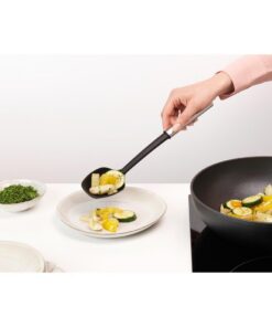 Haal alles uit je etentjes en je pannen – maak kennis met de Brabantia non-stick opscheplepel. Daarmee serveer je makkelijk je groenten en meer. Gemaakt van non-stick en krasvast nylon, met een lange steel. Een lekkere lepel!