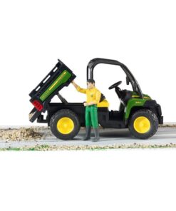 De John Deere Gator 855D is een echte allrounder, of het nu gaat om landbouwwerkzaamheden, als ondersteuning in de bosbouw, bij stadswerk of op bouwplaatsen? de Gator slaat overal een goed figuur. Deze bijzonder geslaagde combinatie van een effectief bedrijfsvoertuig en een overal inzetbare minimobiel maakt de Gator tot iets heel bijzonders.Vooral met de volledig beweegbare chauffeursfiguur verrijkt dit artikel de speelomgeving van onze kleine klanten, waardoor vooral het rollenspel wordt gestimuleerd en de fantasie geen grenzen kent.