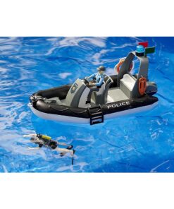 Het hulpverleningsvoertuig is gebaseerd op de bekende RAM 2500 en heeft een licht- en geluidsmodule op het dak gemonteerd.Net als zijn grote rolmodel is het speelgoed uitgerust met de 4-deurs cabine, de CREW Cab.Alle deuren kunnen geopend worden en bieden plaats aan 4 bworld figuren.Voor rijcomfort en offroad-mobiliteit is dit schaalmodel 1:16 voorzien van geveerde assen, waarbij de vooras kan worden gestuurd met de meegeleverde stuurwielverlenging.De achterklep kan tijdens het spelen worden geopend voor transport. De politieboot met bedieningsconsole is door zijn wendbaarheid en veelzijdigheid een belangrijke hulp bij het dagelijkse politiewerk en biedt ruimte aan maximaal 3 bworld-figuren.De politieboot is natuurlijk drijvend en uitgerust met een rondom licht zodat kinderen operaties zo dicht mogelijk bij de werkelijkheid kunnen naspelen. Twee bworld figuren maken deze uitgebreide set compleet.Terwijl de politieagente het politievoertuig en de boot moet bedienen, zorgt de volledig uitgeruste politieduiker voor de operaties in het water. Geschikt voor kinderen vanaf 4 jaar.