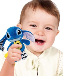 Een zacht Stitch-knuffeldier voor baby’s met multisensorische elementen. Gemakkelijk vast te pakken en te hanteren, het bevordert de sensorische ontwikkeling dankzij het piepen en de mix van verschillende stoffen. De ananas kan gekauwd worden. Met de praktische ring kan Stitch aan een kinderwagen, een kinderbedje of waar dan ook worden gehangen, zodat het kind overal mee naartoe kan worden genomen. Bevordert de gehoorontwikkeling en de handvaardigheid, en versterkt de motorische en zintuiglijke vaardigheden. Speelgoed voor jonge kinderen dat het perfecte cadeau is voor pasgeborenen.