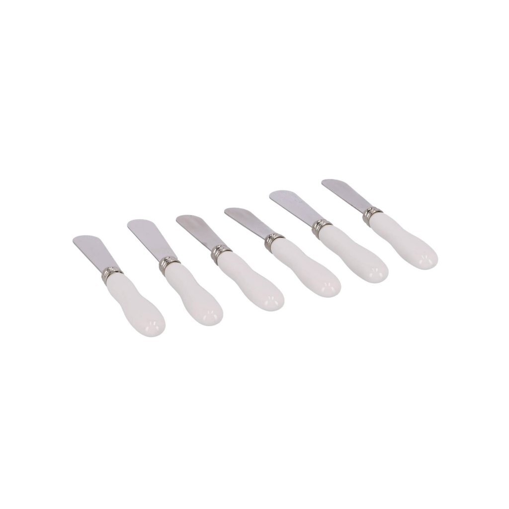 Voor het stijlvol serveren van broodmaltijden of tafelbroodjes als bijgerecht geef je elke tafelgast een eigen botermesje. Deze zesdelige set is gemaakt van 18/8 roestvrij staal met een porselein handvat, wat extra klasse uitstraalt. De mesjes zijn speciaal ontworpen om brood mee te smeren: kort en met een afgerond lemmet, om het brood niet te scheuren.