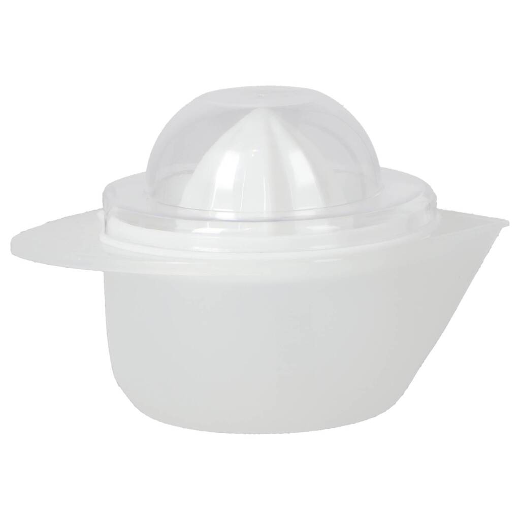 Citruspers van Daily Home in witte uitvoering. Kunststof pers met opvangbakje en schenktuit. Voorzien van zeefdeksel tegen pitten. Compact en geschikt voor dagelijks gebruik.