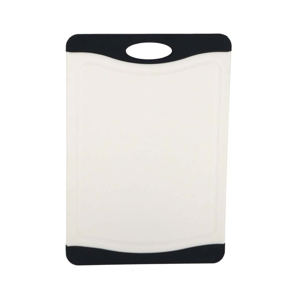 Grote snijplank van Daily Home, formaat 36,8 x 25,5 cm. Gemaakt van stevig polypropyleen met antislip randen en handgreep. Hygiënisch, duurzaam en geschikt voor dagelijks gebruik. Kleur: zwart/wit.