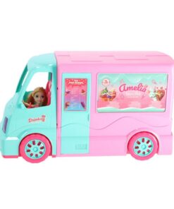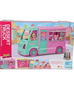 21-delige speelset in de vorm van een dessert truck. Inclusief speelpop. De truck is ongeveer 50 cm groot en 20 cm breed. Inclusief veel accessoires, zoals verkoopwaar, en een tafel met twee stoelen. Geschikt voor kinderen vanaf 3 jaar.