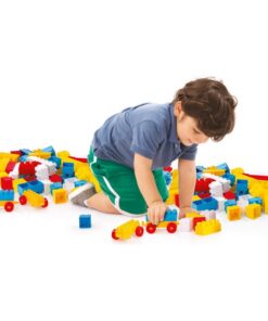 Met de vrolijk gekleurde blokken zijn de mogelijkheden oneindig. Daarnaast heeft de set twee blokjes met wielen, zodat je kindje een eigen locomotief en wagon kan maken en de kamer rond kan rijden! 85-delig. De set is geschikt voor kinderen vanaf 18 maanden.