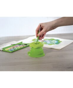 Superhandige watercup die niet mag ontbreken tijdens het schilderen. Deze watercup heeft een handige opbergfunctie doordat je deze in elkaar kan vouwen. Door de zuignap functie onderaan de cup blijft deze kleven op gladde ondergronden wat zorgt voor stabiliteit. De watercup is gemaakt van 50% gerecycled plastic. Kleur: groen.