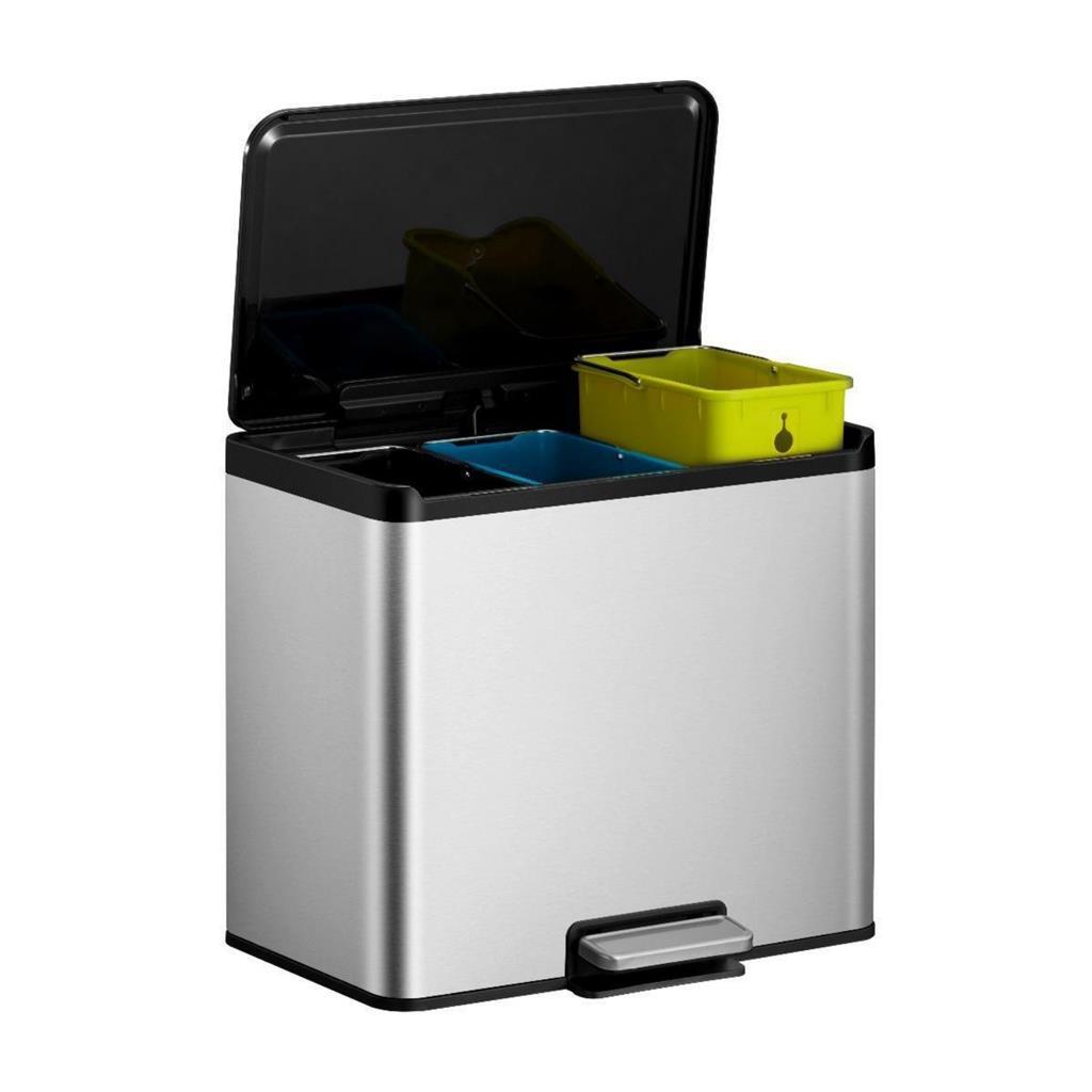 - Inhoud: 3 x 9 liter (zwart=restafval, blauw=papier of plastic, groen=GFT)