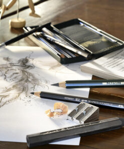 Hoogwaardige kwaliteit potloden voor kunstenaars met een extra dikke 5,3mm stift. Breukvast door speciale verlijming. De lak is op waterbasis en daardoor milieuvriendelijk. Ideaal voor porfessionele gebruikers om mee te tekenen en schetsen. Set met 5 hardheden: HB – 2B – 4B – 6B – 8B.