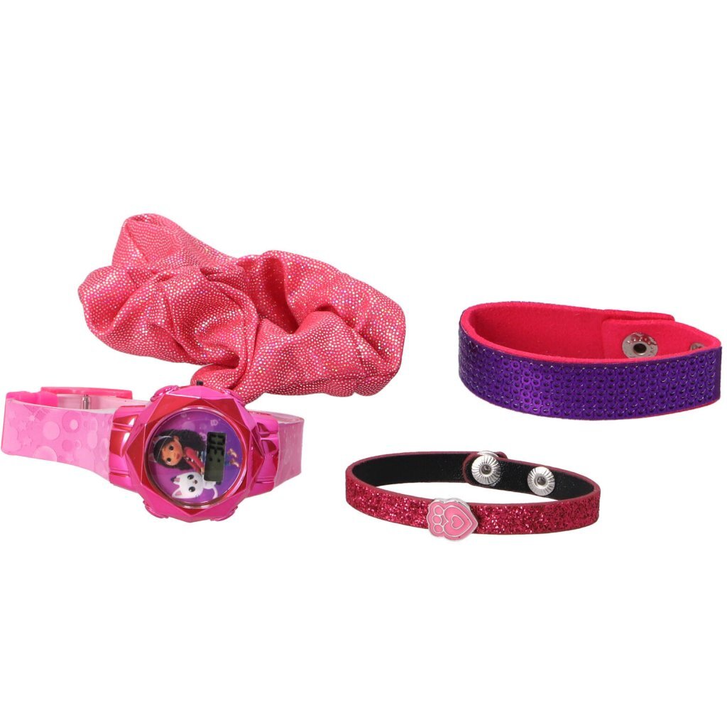 Deze vrolijke cadeauset, perfect voor kinderen vanaf 6 jaar, laat de betovering van Gabby’s Dollhouse tot leven komen. De set omvat een speels kinderhorloge dat perfect past bij de kleurrijke en levendige sfeer van Gabby’s Dollhouse. Maar dat is niet alles! Ontdek ook twee schattige armbandjes en een charmant haarelastiek, allemaal in het betoverende thema van Gabby’s Dollhouse. Of het nu voor een speciale gelegenheid is of gewoon als een verrassing, deze cadeauset voegt een dosis vreugde toe aan het leven van elk kind. Laat ze pronken met hun favoriete Gabby’s Dollhouse accessoires en beleef samen magische momenten.