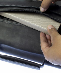 Aktetas met verstelbare, afneembare schouderriem, draagriem, vak met ritssluiting achterin, trolleyriem, twee voorvakken onder de klep. Binnen: hoofdvak met gewatteerd laptopvak, extra hoofdvak met telefoonhoesje en ritsvak, vak met rits in het midden. Binnenmaat 24x37x4cm.