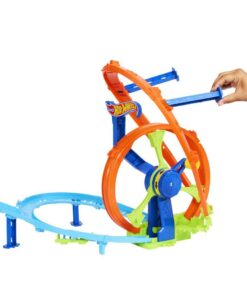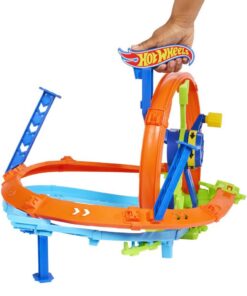 Laat de meegeleverde speelgoedauto (schaal 1:64) op de baan vallen en de kicker knalt de auto automatisch door de looping, door een bocht, door een crashzone en dan terug naar de start – om opnieuw te starten. Maak het nog spannender door meer auto’s in te zetten voor de onvermijdelijke crash. Extra auto’s apart verkrijgbaar. De set is inklapbaar en heeft een handvat zodat je ‘m eenvoudig kunt opbergen en meenemen. Kleuren en versieringen kunnen variëren. Geschikt voor kinderen vanaf 4 jaar.