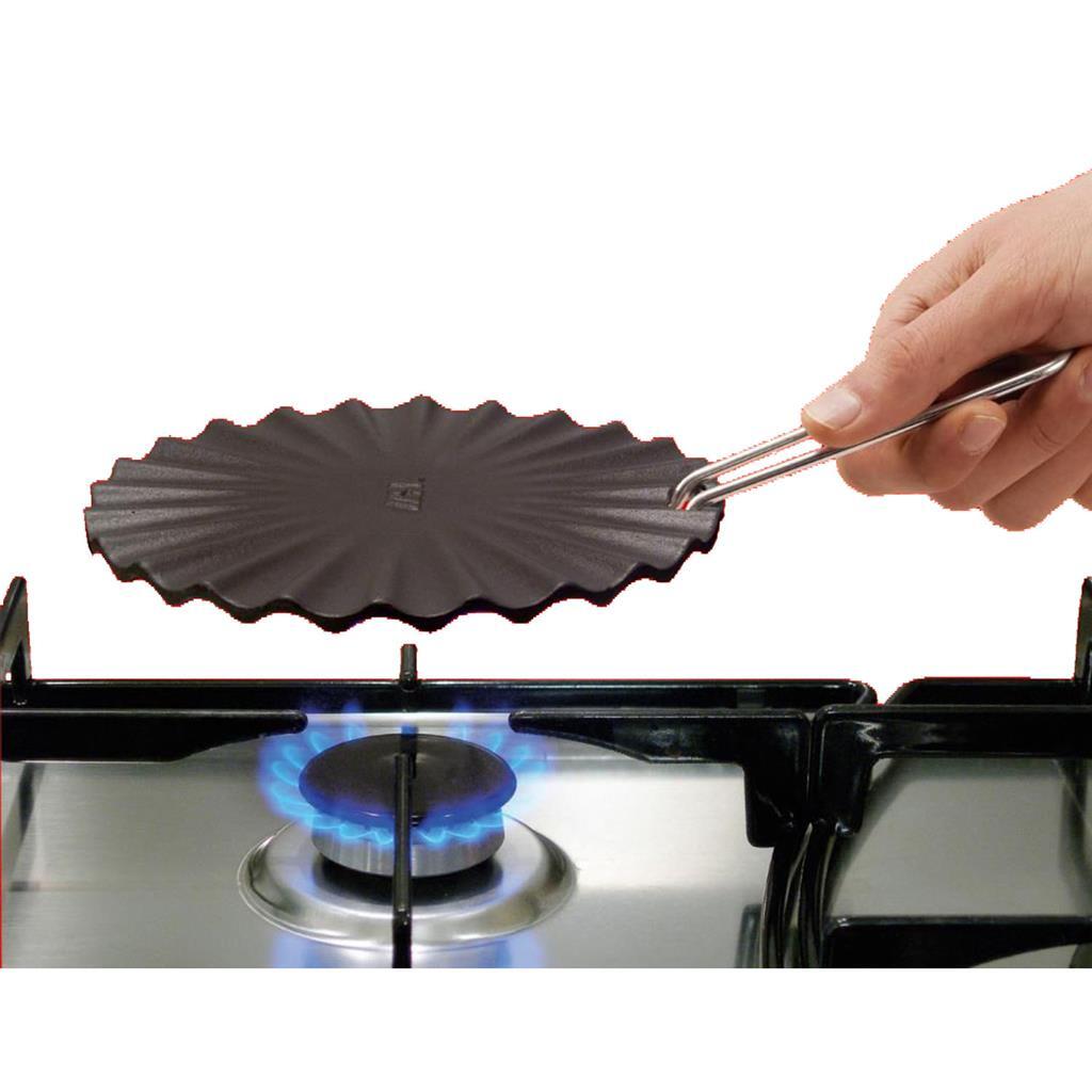 - Spreidt of tempert de hitte van de gasvlam