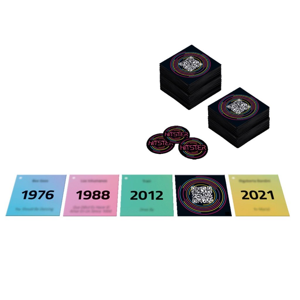 - 300 muziekkaarten, 37 hitster tokens, gratis Hitster app