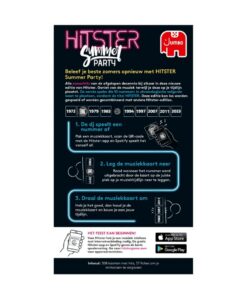 Duik volledig in de zomerse sfeer met de nieuwsteHitster Summer Party! Alle zomerhits van de afgelopen decennia komen samen in deze nieuwe editie van Hitster. Geniet van de muziek terwijl je deze op jouw tijdlijn plaatst. De eerste speler die met succes 10 nummers chronologisch plaatst, wordt gekroond tot Hitster. Deze editie kan als zelfstandig spel worden gebruikt of worden gecombineerd met een van de andere Hitster-edities.