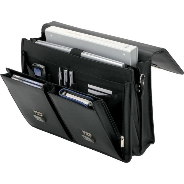 Tas met handvat en afneembare schouderriem, twee sloten, compartiment met ritssluiting op de achterzijde. Binnenafwerking: laptop compartiment, twee grote compartimenten, twee grote voorste compartimenten. Organizervak met pen loops, creditcard en smartphone compartiment.
