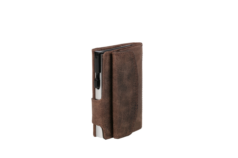 Pasjeshouder Clicksafe RFID Jachtleer BR/ZI 8 pasjes met opbergvak voor muntgeld