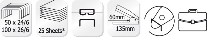 Handige tafelnietmachine voor ieder bureau. Geïntegreerde metalen ontnieter. Kunststof body met metalen mechanisme. Bovenlaadmechanisme voor snel herladen. Opberg ruimte voor nietjs. Capaciteit maximaal 25 vel. Passend bij perforators ‘Trendy’.