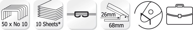 Handige nietmachine voor gebruik onderweg en op kantoor. Geïntegreerde ontnieter. Kunststof behuizing met metalen mechanisme. Bovenlaadmechanisme voor snel herladen. Opbergruimte voor nietjes. Geïntegreerde ontnieter. Capaciteit maximaal 10 vel. Passend bij perforators ‘Trendy’.