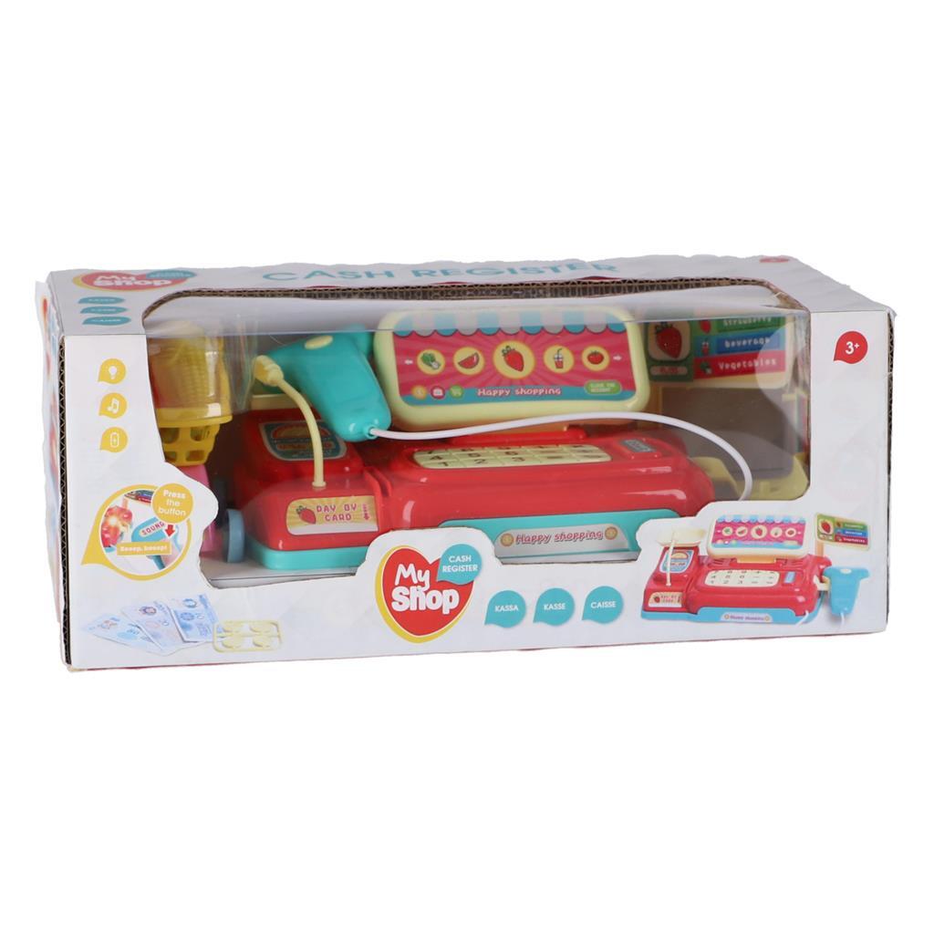Kassa met verschillende accessoiresen licht- en geluidseffecten. Geschikt voor kinderen vanaf 3 jaar.