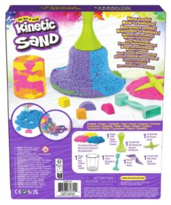 Met deKinetic Sand Squish and Create kun je je creativiteit de vrije loop laten. Deze Kinetic Sand-set heeft alles wat je nodig hebt om zandkunst te maken: in totaal 382 g blauw, geel en roze speelzand. Laat het door je handen stromen – het is zo leuk dat je er niet mee wilt stoppen. Bevestig het platdrukgereedschap aan verschillende gereedschappen om het zand plat te drukken, te snijden en te vormen. De speelmogelijkheden zijn eindeloos. Maak het zand luchtig, vul de achthoekvorm en haal het midden van het zand weg met het platdrukgereedschap. Druk het zand plat met verschillende gereedschappen, meng het zand of maak lagen van Kinetic Sand in de vorm. Je kunt steeds weer opnieuw spelen. Haal voor nog meer zandtastische manieren om te spelen de Kinetic Sand-zakken met 907 g gekleurd zand in huis (speelgoed elk afzonderlijk verkocht). Kinetic Sand is het originele magische, kneedbare en betoverende zand. Dit zand prikkelt de zintuigen en droogt in tegenstelling tot boetseerklei nooit uit. Met Kinetic Sand geniet je dus urenlang van zintuiglijk, zelfstandig spel. Het is gemaakt van natuurlijk zand, is niet giftig en hypoallergeen. Het plakt op magische wijze aan elkaar en is gemakkelijk op te ruimen.