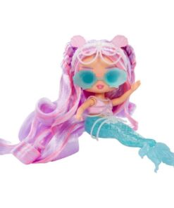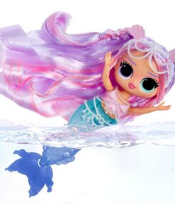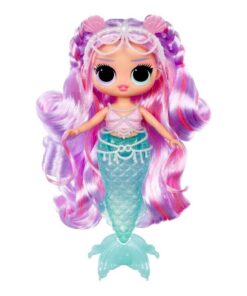 Duik in een betoverende wereld vol kleurenmagie en verrassingen met de gloednieuwe L.O.L. Surprise Tweens Mermaid Lana Marine-modepop met adembenemende accessoires om uit te pakken! Perfect voor in bad en om fantasierijk mee te spelen. Doop je Tweens Mermaid-pop in koud water en kijk hoe de kleur van haar staart verandert van aquablauw in parelpaars voor een magische onderwaterervaring! Kun jij raden in welke kleur haar aquablauwe vin verandert? Vergeet niet om je pop te stylen met haar betoverende accessoires zoals haar zeebril, schelpen- en pareltiara en schattige top met parels! Ze heeft een heel mooi gezichtje, prachtig haar, haar eigen modieuze zeemeerminnenlook en beweegbare ledematen voor heel veel houdingen. Ze kan bijvoorbeeld ook zitten! Ook kan ze stabiel op haar vin staan, waardoor je haar makkelijker kunt stylen! Ontdek wat er in elke doos zit, zoals een schitterende L.O.L. Surprise Tweens Mermaid-pop, bril, haarband en een accessoire bezet met parels die bij de top en staart van de pop past!