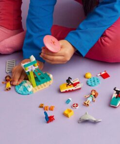 Laat kinderen leuke avonturen aan zee bedenken met dit LEGO Friends Strand waterscooter (42623) reddingsspeelgoed. De set bevat 2 minipoppetjes, een dolfijnenfiguur en accessoires voor fantasierijk spel. Deze LEGO set bevat 2 waterscooters, zodat kinderen het verhaal kunnen naspelen. Leo heeft strandwachtdienst en gebruikt de verrekijker om een oogje in het zeil te houden. Het is ook het ideale uitkijkpunt om dolfijnen te spotten. Later voegt hij zich bij zijn vriendin Candi en de vrienden racen op hun waterscooters. Kinderen zullen dol zijn op de details, zoals de brutale krab die graag de koelbox plundert op zoek naar ijsjes! Ontdek meer cadeautips voor kinderen in het LEGO Friends universum (sets apart verkrijgbaar), vol mogelijkheden om verhalen uit het echte leven na te spelen. Download de LEGO Builder app voor een eenvoudige en intu?tieve bouwervaring. Hiermee kunnen kinderen inzoomen en modellen in 3D draaien, sets opslaan en hun voortgang bijhouden. 84-delig. Geschikt vanaf 5 jaar.