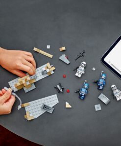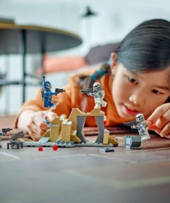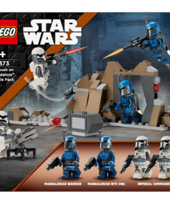 Laat kinderen geweldige jetpackconfrontaties naspelen met het LEGO Star Wars: The Mandalorian Hinderlaag op Mandalore Battle Pack (75373). Met deze bouwbare speelset kunnen ze de actie uit seizoen 3 van Star Wars: The Mandalorian opnieuw beleven met 4 LEGO minifiguren: een Mandalorian Nite Owl, Mandalorian strijder en 2 Imperial Commando’s. Er zijn ook veel LEGO accessoires, waaronder blasters, blasterpistolen en jetpackelementen, plus een transparant element met een handvat om een LEGO minifiguur te laten ‘vliegen’. Een bouwbare rotsformatie met een grot en een noppenschietend kanon dragen bij aan de actiemogelijkheden. Bekijk de LEGO Builder app voor digitale instructies en zoom- en draaifuncties om de bouwervaring nog leuker te maken. De rotsformatie/grot kan worden verbonden met de Mandalorian basis uit de set Paz Vizsla en Moff Gideon duel (75386, apart verkrijgbaar) voor extra speelmogelijkheden. 109-delig. Geschikt vanaf 6 jaar.