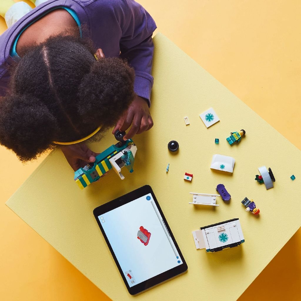 Met deze ambulance kunnen kinderen vanaf 5 jaar reddingsmissies vol actie naspelen. Kinderen kunnen de zijkanten omhoog klappen en de achterdeuren openen voor eenvoudige toegang tot de brancard en medische apparatuur, waaronder een speelgoedspuit, verband en dokterstas. De set bevat ook een skateboard en skatehelling, plus minifiguren van een skateboarder en een verpleegkundige voor leuke verhalen. Deze voertuigbouwset bevat een stapsgewijze bouwgids en 3D-instructies in de Builder app. Hier kunnen kinderen sets ontdekken en opslaan, hun bouwvoortgang bijhouden en inzoomen en draaien om modellen vanuit alle hoeken te bekijken terwijl ze bouwen. Lego City voertuigen speelsets bieden uitgebreide speelmogelijkheden op het land, in de lucht en op het water voor fantasierijk speelplezier zonder grenzen. Kinderen kunnen dit noodvoertuig toevoegen aan andere sets (apart verkrijgbaar) uit het Lego City assortiment voor nog grotere avonturen!
