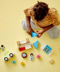 Ga samen met je nieuwsgierige peuter op avontuur met het Lego Duplo 10986 familiehuis op wielen. Help je kleine bouwer met het maken van een schattig speelgoedhuis dat aan de auto kan worden bevestigd. Peuters vanaf 2 jaar kunnen het huis vastkoppelen en vertrekken naar waar ze maar willen. Wie weet welke nieuwe en interessante mensen ze zullen ontmoeten! Peuters spelen het leven van een gezin onderweg na met de 2 figuren, die allebei in de auto passen. Ze kunnen gezellige vakantiemomenten beleven wanneer ze samen rond het kampvuur gaan zitten om verhalen te vertellen en warme chocolademelk te drinken. Stimuleert verhalen vertellen. Met herkenbare omgevingen, diverse figuren en peutervriendelijke stenen worden creatieve activiteiten kinderspel.