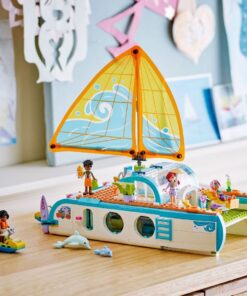 Hier is een leuk bouwpakket voor kinderen om je kleine scheepsmaten te verrassen. DeLego Friends 42664 Avontuurlijke Bootreis voor meisjes en jongens vanaf 8 jaar bevat 4 Friends poppetjes en heel veel accessoires voor fantasierijke rollenspellen. De gedetailleerde speelgoed boot zit boordevol realistische kenmerken, zoals het zeil dat beweegt als kinderen aan het wiel draaien. Kinderen kunnen verhalen verzinnen over Friends minifiguren van Paisley, Zac, Celine en Sky die op een bootavontuur gaan. De boot heeft ruimtes om te koken, dineren, ontspannen en slapen. Ontdek een bubbelbad met een zwemband, een gaminggedeelte, een slaapgedeelte met 4 bedden en een douche en toilet. Til de bovenkant van de boot op om toegang te krijgen tot de gedetailleerde kitchenette en eethoek. Er zijn veel elementen voor kinderen om te ontdekken terwijl ze koken en dineren met de Friends personages. Andere accessoires zijn een verrekijker om de dolfijn en haar jong te spotten, 2 waterscooters, een surfplank, zwemvliezen, gamecontrollers en meer. Dit is een leuk cadeau voor meisjes en jongens die dol zijn op speelgoed dieren figuren en bouwen.