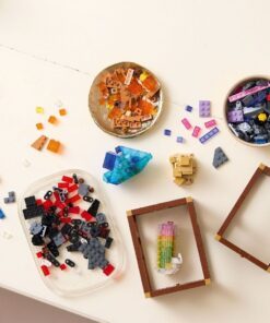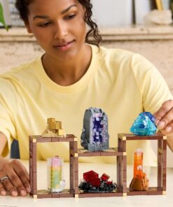 Deze set is een prachtig cadeau voor stenenverzamelaars en natuurliefhebbers. Hij bevat modellen van 6 verschillende mineralen en bouwbare displayplanken en vormt een opvallende decoratie voor in de woonkamer. Gebruik slimme bouwtechnieken en transparante Lego stenen om modellen te bouwen van goudkleurig pyriet, paarse amethist, blauw fluoriet, donkerroze toermalijn, rozerood rhodochrosiet en oranje kwarts. Zet de 3 planken in elkaar en bevestig je creaties erop. Rangschik de onderdelen op jouw manier en verplaats de mineralen om je display aan te passen. Je vindt de bouwinstructies in de doos van deze bouwset voor volwassenen of geniet van een intuïtieve bouwervaring met de Builder app, waar je tijdens het bouwen een digitale 3D-versie van de modellen kunt bekijken. De set bevat 880 onderdelen. Geschikt vanaf 18 jaar.