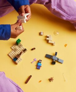 Dit Lego Minecraft speelgoed voor spelers van is het eerste bouwspeelgoed voor kinderen in het Minecraft woestijnbioom.Lego Minecraft 21251 Steve’s Desert Expedition daagt kinderen uit om een Minecraft huis te bouwen in een vijandige omgeving en het vervolgens te verdedigen tegen aanvallen van een vliegend fantoom. Dit cadeau voor jongens en meisjes bevat 3 Minecraft figuren, waaronder Steve, plus een Minecraft hut in het woestijnbioom. De set is inclusief herkenbare Minecraft elementen zoals een werkbank, een kampvuur en verschillende delen woestijnlandschap. Het is tijd voor creatieve avonturen en actie wanneer een vliegend fantoom met beweegbare vleugels naar beneden duikt om de basis aan te vallen. Het speelgoed heeft ook een nieuwe gezichtsuitdrukking voor Steve en, voor de eerste keer in een Minecraft set, een figuur van een babykameel. Dit cadeau voor kinderen en gamers kan worden gecombineerd met andere Minecraft speelsets (apart verkrijgbaar). 75-delig. Geschikt voor kinderen vanaf 6 jaar.
