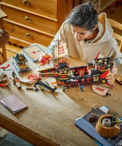Dit grote en zeer gedetailleerde Bounty schip is het nieuwste model in een reeks beroemde schepen en zit boordevol coole kenmerken en functies. Inclusief een displaystandaard. Dit bouwpakket voor kinderen bevat alles wat ninjafans nodig hebben om verhalen uit seizoen 3 van deNinjago Dragons Rising tv-serie na te spelen: een tandwiel om de zeilen te openen en te sluiten, afneembare daken en vloeren om toegang te krijgen tot het interieur van de speelgoed boot. Er is zelfs een sushibar en een tafel in de hoofdcabine die kan worden opgeklapt om een geheime computer te ontdekken. De set is inclusief 6 minifiguren van personages Zane, Cole, Wyldfyre, Nya, Rogue en de gemene Zarkt, die allemaal gewapend zijn met coole ninjawapens. De ninja’s delen een doorschijnend onthullingszwaard dat ze helpt om een geheime kaart op de tafel van de kapitein te onthullen.