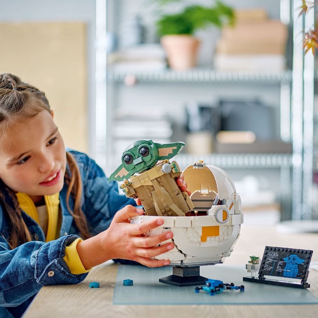 Dit bouwbare displaymodel is een speels stukje decoratie voor jongens, meisjes en Star Wars: De Mandalorian fans van 10 jaar en ouder. Grogu heeft armen met draaiknoppen en een beweegbaar hoofd en oren. Je kunt hem in of naast de zweefkinderwagen zetten. De set is inclusief een van stenen gebouwde Sorgan-kikker (Grogu’s favoriete snack!), een schakelknop en een koekje voor Grogu om vast te houden. Het hoofdmodel in deze Star Wars bouwset wordt aangevuld met een Grogu figuur van standaardformaat in een kleine zweefkinderwagen om zelf te bouwen, plus een informatieplaatje dat de vrolijke blikvanger compleet maakt. De set bevat stapsgewijze instructies en in de Builder app vind je intuïtieve 3D zoom- en draaifuncties om de creatieve ervaring nog leuker te maken.