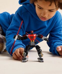 Deze snel te bouwen mecha is verstelbaar en ziet er net zo uit als Darth Maul in Star Wars: The Clone Wars, waarin hij streed om Mandalore over te nemen. De speelgoed mecha in dit bouwpakket voor kinderen heeft een cockpit voor de Darth Maul Star Wars minifiguur van een personage, een clip voor zijn dubbelzijdige rode Star Wars lichtzwaard en grijphanden om het grote lichtzwaard mee vast te houden. Een Star Wars Probe Droid kan aan de achterkant van de mecha worden bevestigd voor nog meer speelmogelijkheden. Deze Darth Maul mecha is een leuk Star Wars cadeau voor jongens, meisjes en fantasyliefhebbers die dol zijn op bouwen en rollenspellen en maakt deel uit van een serie Star Wars mecha sets (elk apart verkrijgbaar).