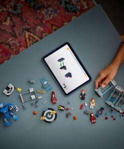 Deze bouw- en displayset zit boordevol Marvel figuren en coole functies voor fantasierijke avonturen en is een ideaal cadeau voor jongens en meisjes. Het bouwbare Marvel speelgoed bevat 3 harnascabines en 3 minifiguren in Iron Man harnassen: de MK1, MK43 en MK6. Er zijn ook minifiguren van Pepper Potts en de schurk Aldrich Killian, plus een Dum-E robot en een grote Igor Iron Man MK3 mecha met beweegbare armen en benen en een cockpit met ruimte voor een minifiguur. Er is ook een onderhoudsplatform met 2 robotarmen en een groot scanapparaat. Wanneer de actie begint, komen 2 vuurelementen, een brandblusser en 2 noppenschieters van pas. Voor digitaal plezier kunnen bouwers inzoomen, modellen in 3D draaien en hun voortgang bijhouden met de leuke, intuïtieve Builder app. De set bevat 384 onderdelen. 384-delig. Geschikt voor kinderen vanaf 8 jaar.