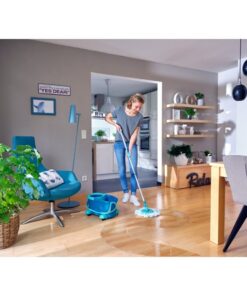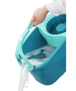 Voor iedereen die op zoek is naar een complete oplossing voor het gemakkelijk reinigen van alle soorten vloeren. Bestaat uit een telescopisch handvat, een emmer van 6 liter met centrifugaalscherm, een micro duo mop en een trolley.Zonder veel moeite en zonder handen in vuil water.De nieuwe emmer garandeert een rustige en veilige draai.Voor een optimale en rugvriendelijke werkhoogte kan de telescoopsteel van de set individueel worden aangepast aan de optimale werkhoogte (109 – 140 cm). De emmer kan gemakkelijk met de vloerwisser worden geduwd waar hij nodig is tijdens het reinigen.Ondanks zijn 360 ° wielen staat deset veilig en stabiel, zelfs terwijl de mop droog wordt gecentrifugeerd.