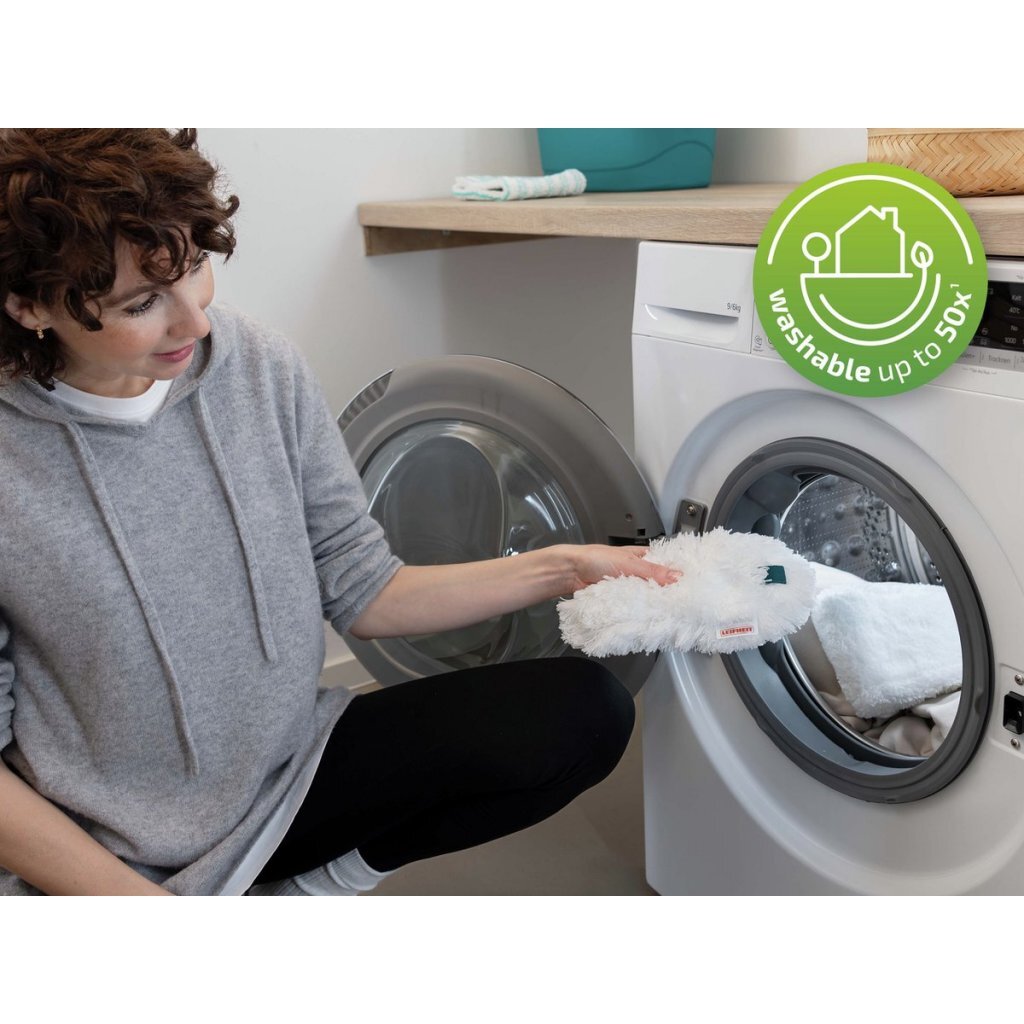 De textiel 360°-stofborstel bestaat uit hoogwaardig microvezel, dat stof, haren en allergenen uitstekend opneemt en vasthoudt in de vezels. Deze stofdoek voor de plumeau is wasbaar en kan 50 keer op 40°C in de wasmachine gewassen worden. Zo bespaar je geld, want je hebt geen wegwerpdoeken nodig, en je helpt het milieu, want je hebt minder afval. Ook na meerdere keren wassen blijven de reinigingsprestaties van de plumeau volledig behouden.