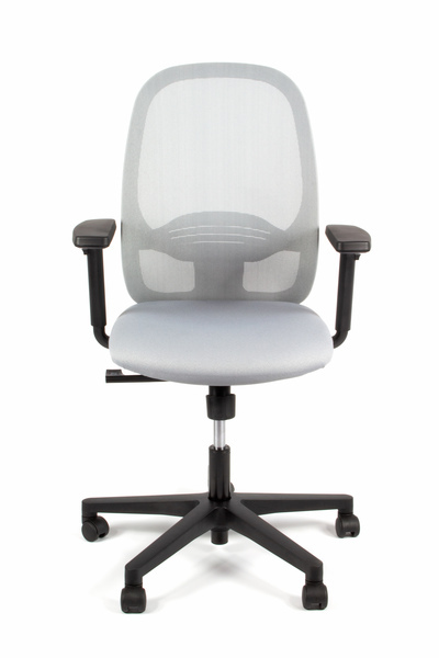 Bureaustoel Grace 01 zorgt voor een comfortabele zithouding door de brede rugleuning met verstelbare lendesteun. De armleuningen zijn 1D verstelbaar (hoog/laag) en door het synchroon mechanisme is de stoel kantelbaar en met een draaiknop is de weerstand te regelen. Ook de rugleuning is verstelbaar waardoor deze bureaustoel geschikt is voor maximaal 8 uur zitcomfort. De stoel is vervaardigd van metaal en heeft een kunststof afwerking. Het onderstel is gemaakt van kunststof en voorzien van 5 wielen die geschikt zijn voor zachte vloeren. Het polyester zitvlak (48 x 41 cm) is een synthetische vezel die licht, duurzaam, vormvast, kreukvrij en isolerend is en heeft een slijtvastheid van 85.000 zitcycli. De rugleuning is voorzien van netbespanning. Door de hendel onder de zitting is de luchtveer in hoogte individueel in te stellen van 43 tot 56 centimeter. De bureaustoel heeft een maximaal draagvermogen van 110 kg en weegt 12,5 kg. Kleur stof grijs/grijs. De bureaustoel is voorzien van Arbo norm EN1335. Made in Italy.