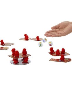 Naarmate de wiebelende toren steeds hoger wordt, is de spanning om te snijden: wie laat de toren instorten? Gooi de dobbelsteen en kijk welk symbool erop staat. Zet vervolgens een bever op elk overeenkomend symbool op de bouwtegels. Als een tegel vol is, moet deze op de toren worden gezet. Maar wees voorzichtig, want als de toren omvalt, is het spel afgelopen en heb jij verloren! De speler met een vaste hand en een beetje geluk wint! Een geweldig cadeau voor kids vanaf 6 jaar die van dieren, bouwspelletjes en plezier houden! Afwijkende kleuren en versieringen mogelijk.