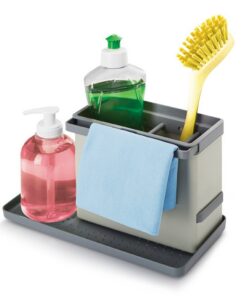 - Biedt ruimte voor het bewaren van je afwasmiddel en afwasborstel